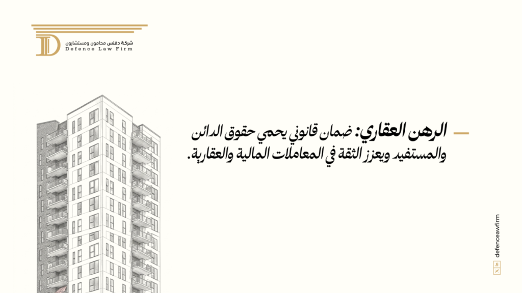 ● يضمن الرهن العقاري للدائن إمكانية استيفاء حقوقه في حال تخلف المدين عن السداد.